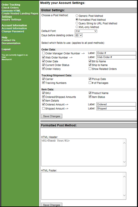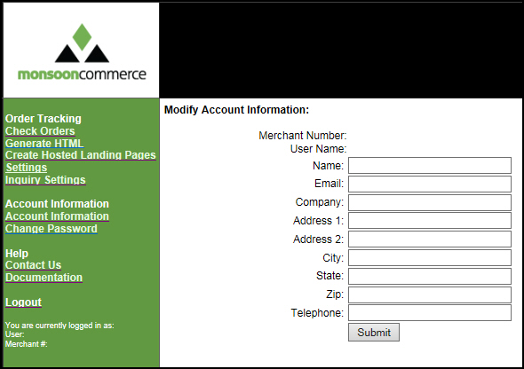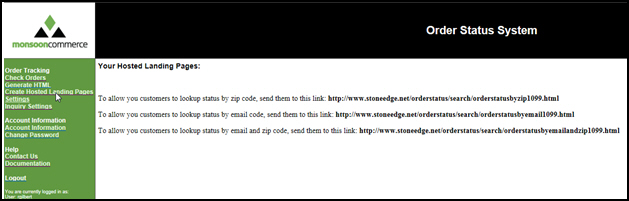 When using this method, the order status data is sent to a web page you specify. Contact Monsoon Commerce to obtain more information about using this method, however, Monsoon Commerce does not provide the technical resources necessary to implement this type of custom modification.