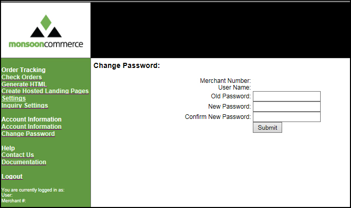 SETIPassword - enter the Order Status System password provided by Monsoon Commerce