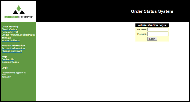 To access your account, it is necessary to enter the User Name and Password assigned by Monsoon Commerce when the Order Status System subscription is purchased. That information is found in the order confirmation e-mail sent to the e-mail address specified in our customer account record. Select Login.