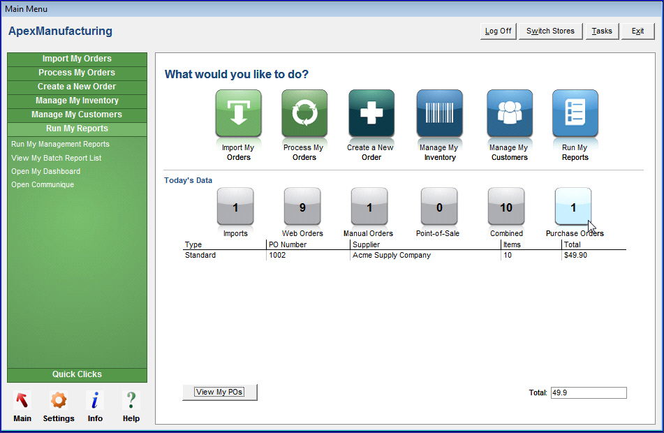 Select View My Orders to view the orders at the Process Orders screen or View My POs to open the Purchase Order screen.