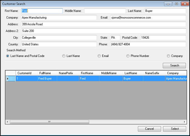 record is found, select it from the list and then click Select.