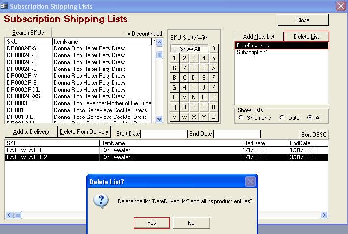 Note: If the list is assigned to a customer's subscription or to a Subscription SKU, you will not be able to delete the list. You must first remove or reassign the list in the Customer's Subscription record or in the Subscription SKU's setup before deleting the list.