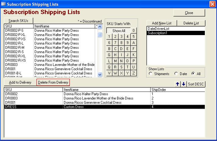 To delete a single SKU from that list, select the product in the list on the bottom and click Delete from Delivery.