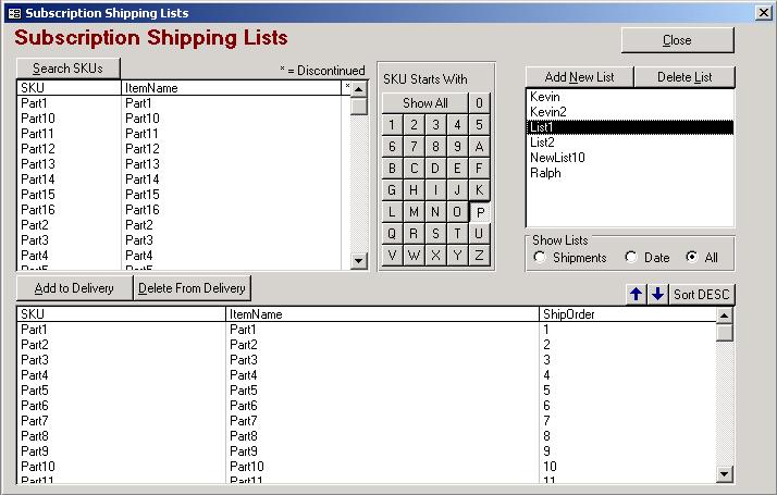 The list can be shipment-driven which means that the first delivery of the subscription is always the first item on the list regardless of when the subscription was purchased. For example, for a top 100 paperbacks list the first book on the list may be "Gone With the Wind". If Customer "A" signs up for the subscription in January, their first shipment is "Gone With the Wind". If Customer "B" signs up for the same subscription in June, their first shipment is also "Gone With the Wind" while Customer "A" receives the sixth paperback on the list.